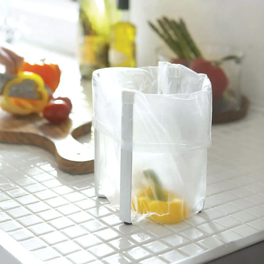 ポリ袋を四隅にひっかけてシリコンキャップで止めるだけで、即席のゴミ箱として使用できます。調理中にでる野菜クズなどを気軽にポイ!使い終わったらポリ袋を外して、そのまま捨てるだけ。