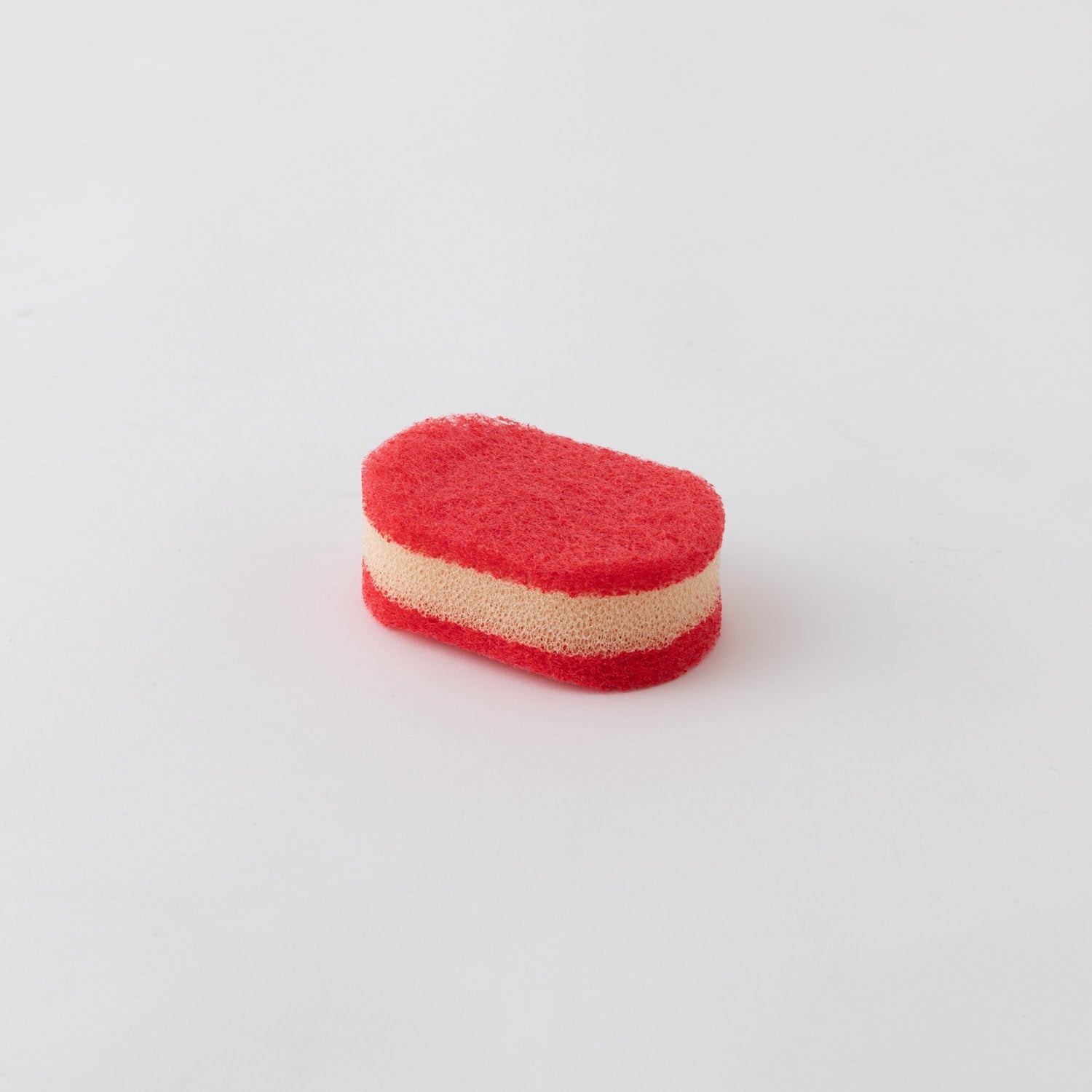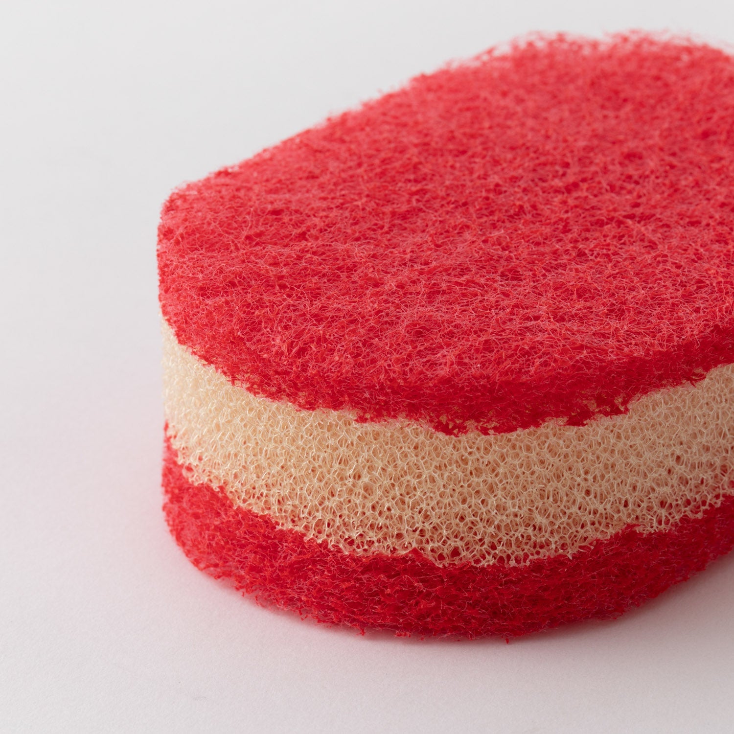ナイロン不織布とポリウレタンフォームの二層構造。外面にやわらかいナイロン不織布を使用しており、手や食器を傷つけないやさしい肌触りです。スポンジ密度にこだわり、使い始めから握りやすく、いつまでもへたらず、泡立ちの良いスポンジです。