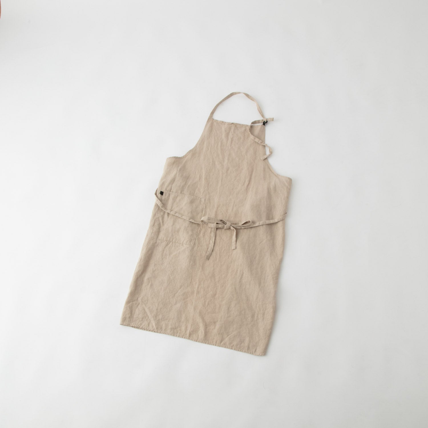 高品質なリナスのリネンで織られたLinneのエプロンは、ウォッシュド加工が施されて、使い始めたその時からまるで何回も洗濯して使い込んだようなくたっとした柔らかでナチュラルな肌触りが特長です。