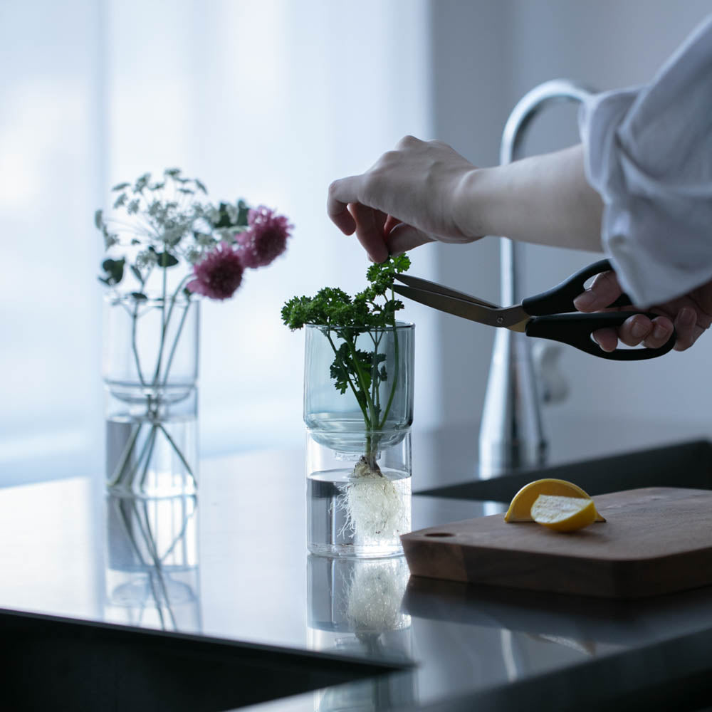 花器に挿して保存しておくと使いたい時にサッと使えるだけでなく、キッチンスペースを爽やかに彩ります。
